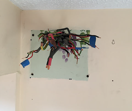 The images show upgrade progress of outdated domestic consumer unit dated 1978.