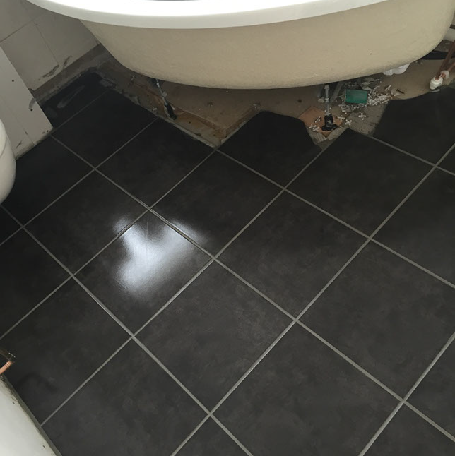 The bathroom is then tiled